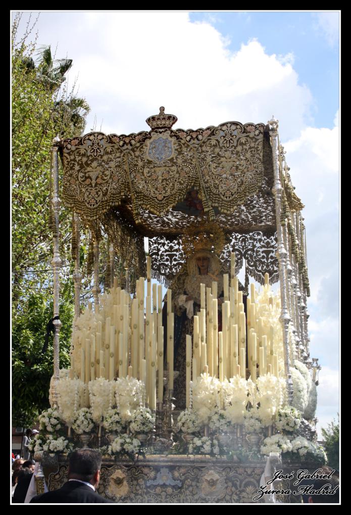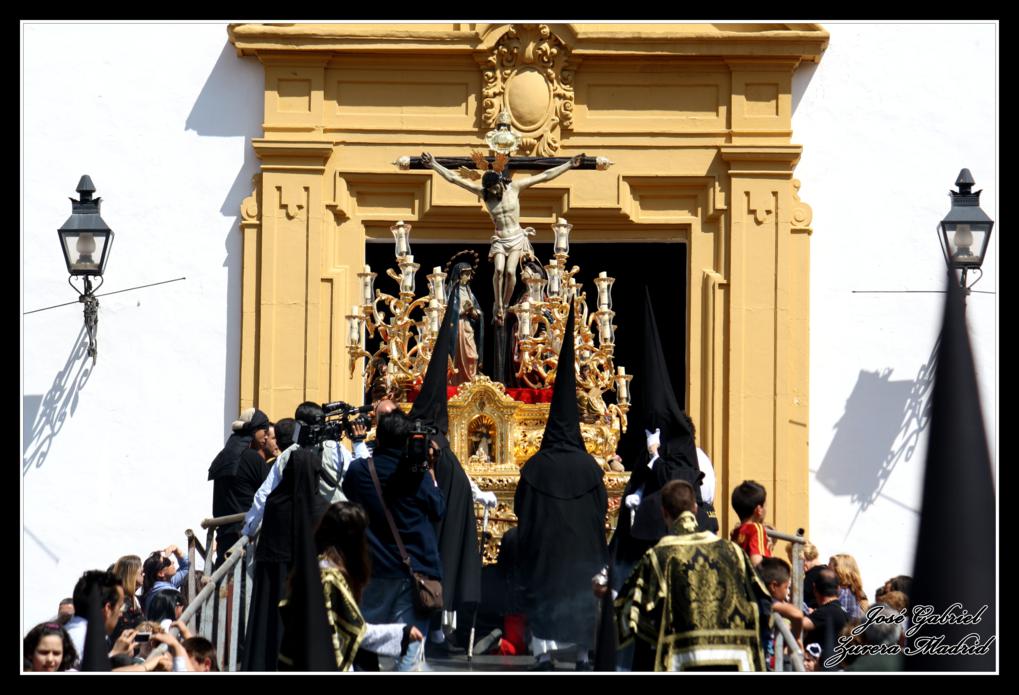 Aunque la Hermandad del Amor es la cuarta en pasar por Carrera Oficial en la tarde del Domingo de Ramos, es la primera que se puso en la calle de las cinco hermandades vespertinas a eso de las tres de la tarde. Por ello, ante un día con previsiones llenas de incertidumbre y ante las noticias de suspensiones de salidas procesionales que llegaban desde la vecina ciudad de Sevilla, la decisión que tomase la Hermandad del Amor sería trascendental para el desarrollo del Domingo de Ramos. Por suerte, a la hora de la salida lucía el Sol con un cielo salpicado de nubes que no parecían amenazar, de hecho no amenazaron hasta pasadas las cinco de la tarde cuando algunos nubarrones, que no llegaron a descargar, se posaron sobre nuestra ciudad; y por tanto, el Amor decidió salir con sus tres pasos hacia la Santa Iglesia Catedral.
