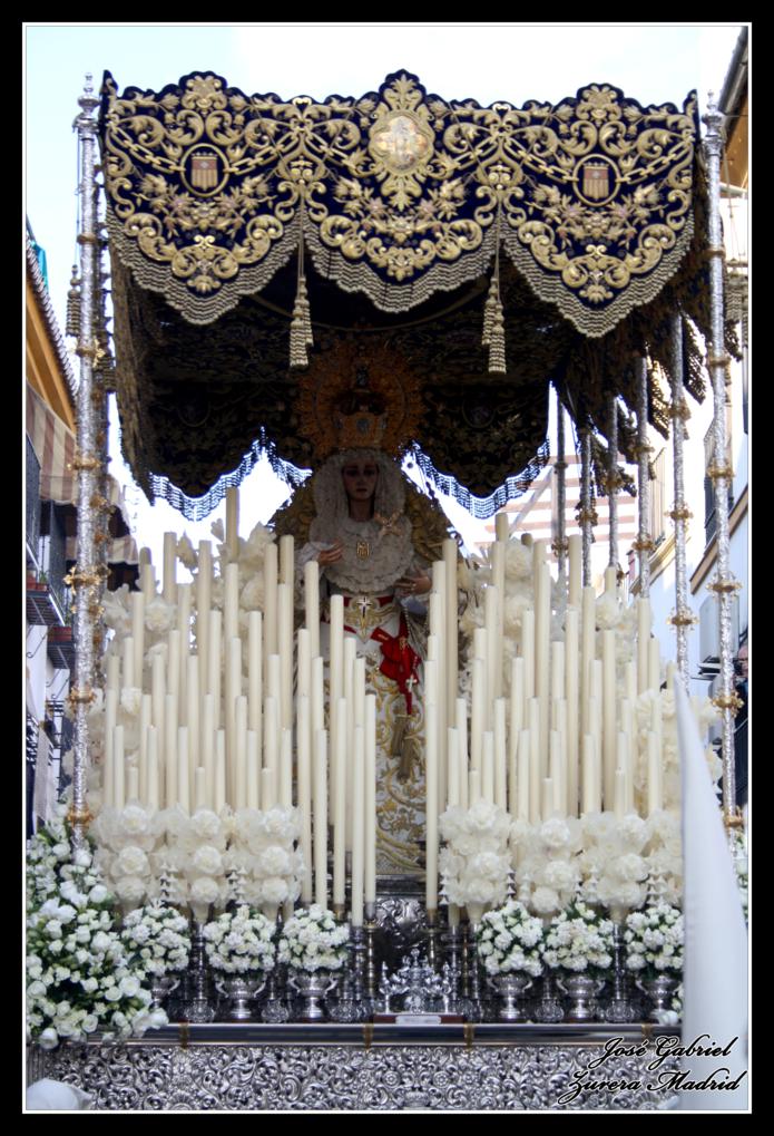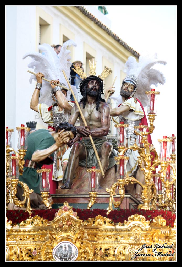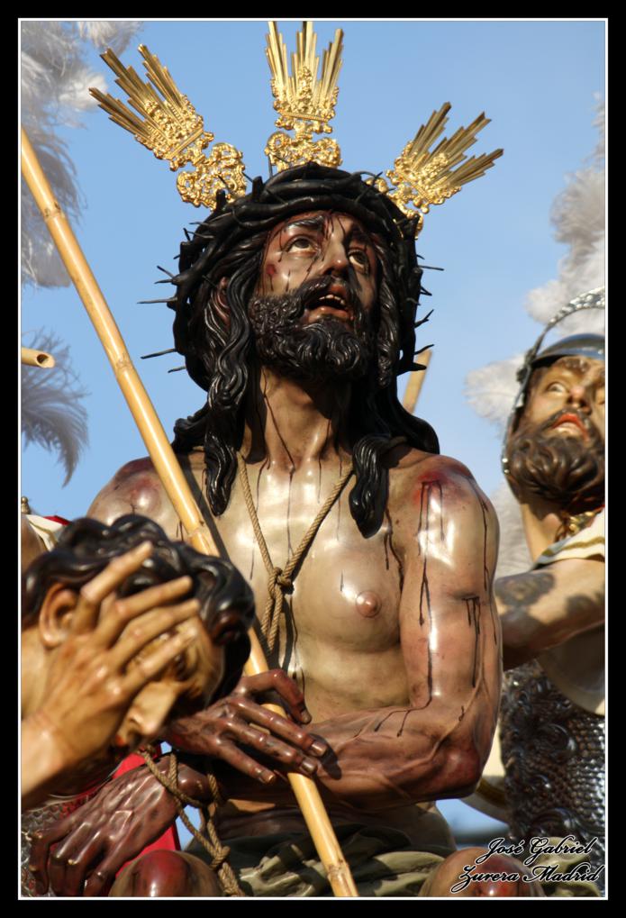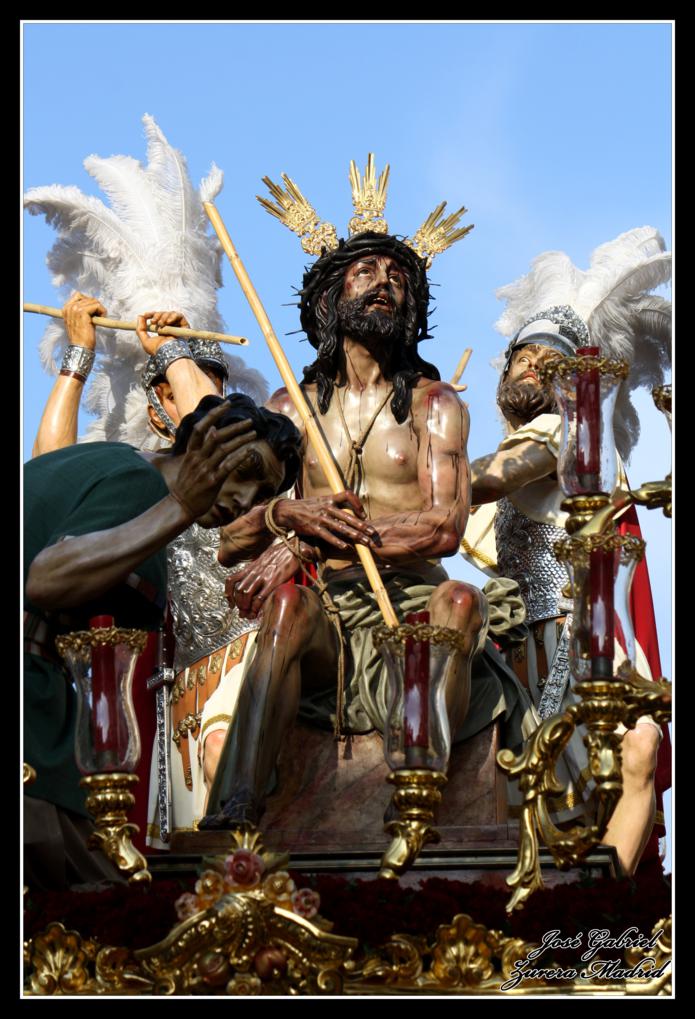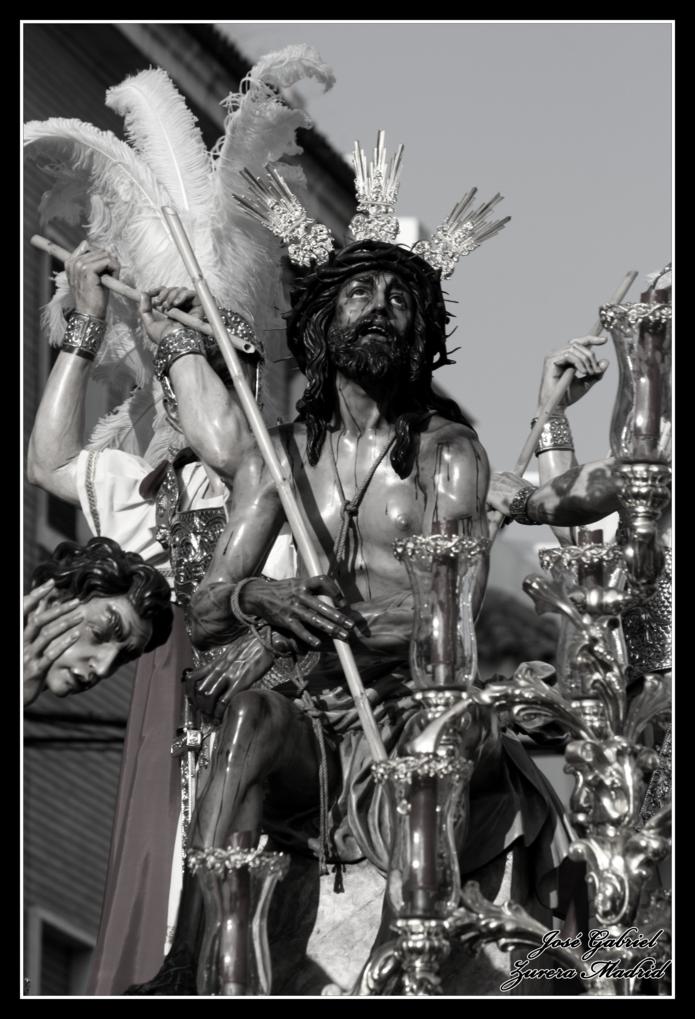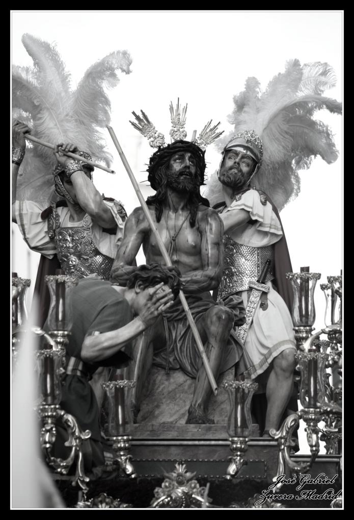 La primera de las hermandades del Lunes Santo en pasar por Carrera oficial fue la Hermandad de la Merced que llegó desde el Zumbacón y de la que os muestro el paso de Nuestro Padre Jesús Humilde en la Coronación de Espinas y la Virgen de la Merced por el Realejo y la plaza de San Andrés de camino al recorrido oficial: