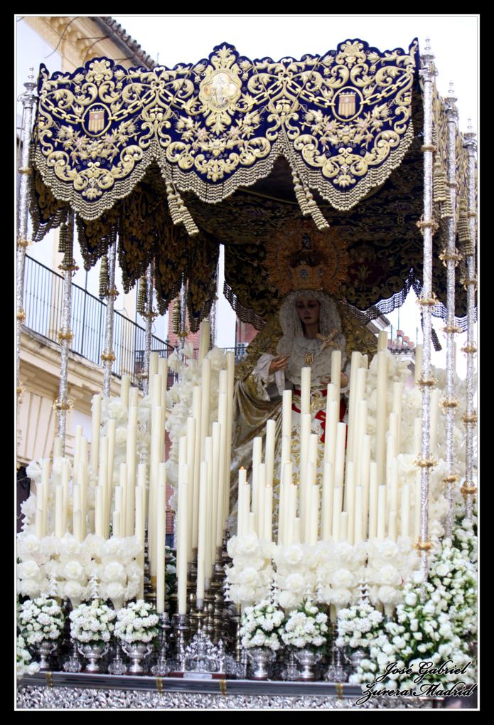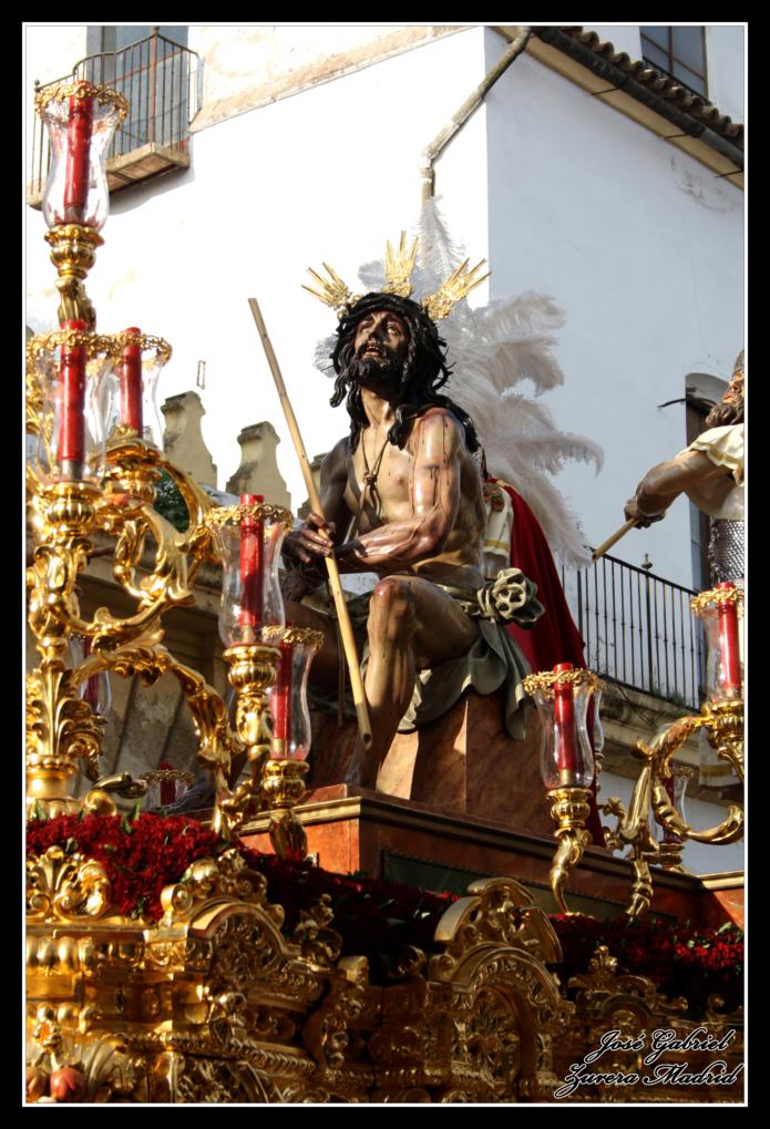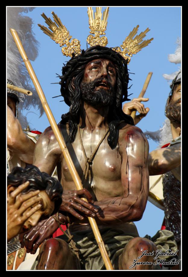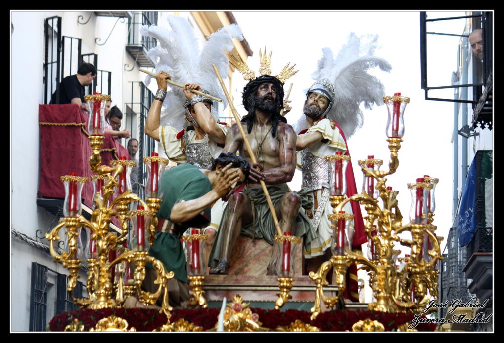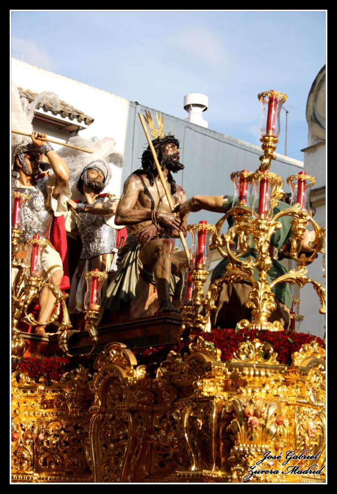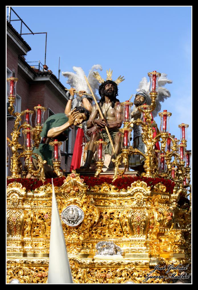 La primera de las hermandades del Lunes Santo en pasar por Carrera oficial fue la Hermandad de la Merced que llegó desde el Zumbacón y de la que os muestro el paso de Nuestro Padre Jesús Humilde en la Coronación de Espinas y la Virgen de la Merced por el Realejo y la plaza de San Andrés de camino al recorrido oficial: