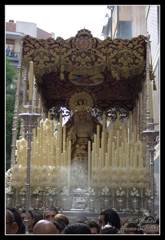 A continuación os ofrezco algunas fotos de la Reina de los Mártires a su paso por el Bulevar del Gran Capitán en su ida al recorrido oficial: