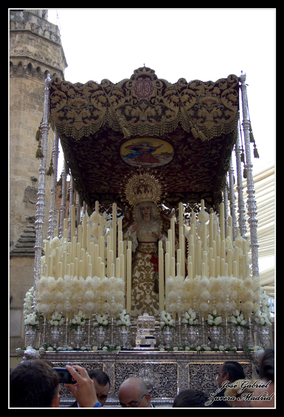 Para esta ocasión tan especial, la Reina estuvo acompañada musicalmente por dos bandas de música(la de Julián Cerdán y la de la Esperanza de Córdoba), y la candelería del paso recuperó las flores de cera que dejó de llevar en los años noventa.