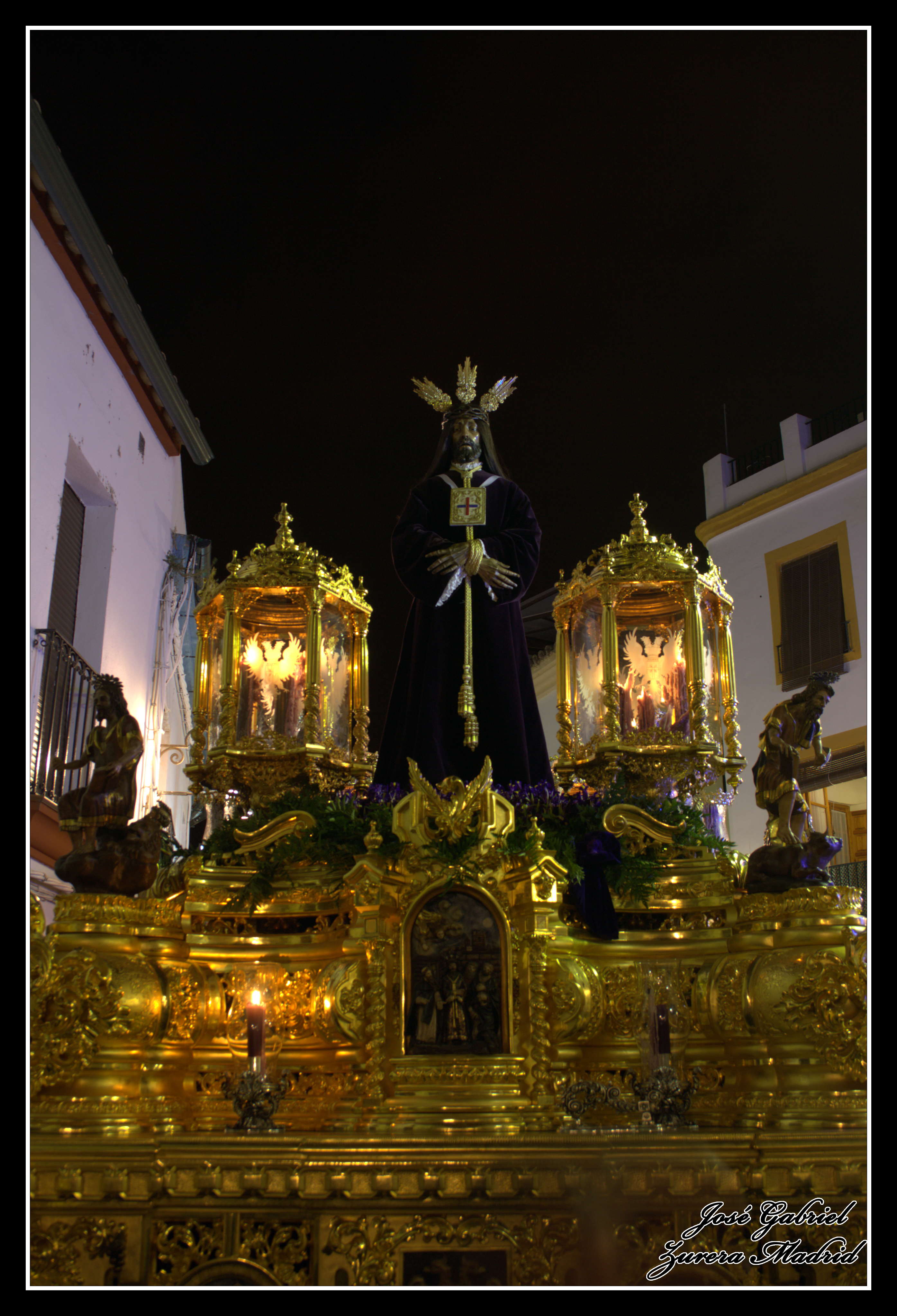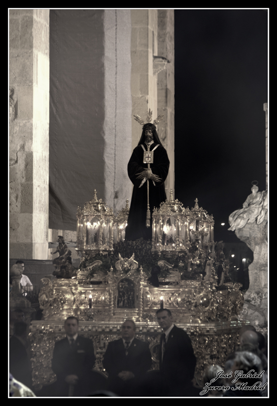 Desgraciadamente no puedo ofreceros fotografías del Señor de la Oración en el Huerto que representaba la I Estación, por lo que paso a mostraros las fotografías de Nuestro Padre Jesús Nazareno Rescatado, el Señor de Córdoba, a su paso por las calles Torrijos y Cardenal González.
