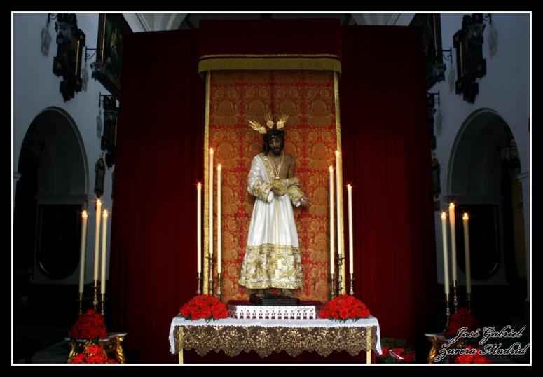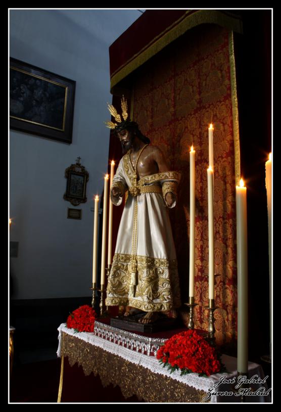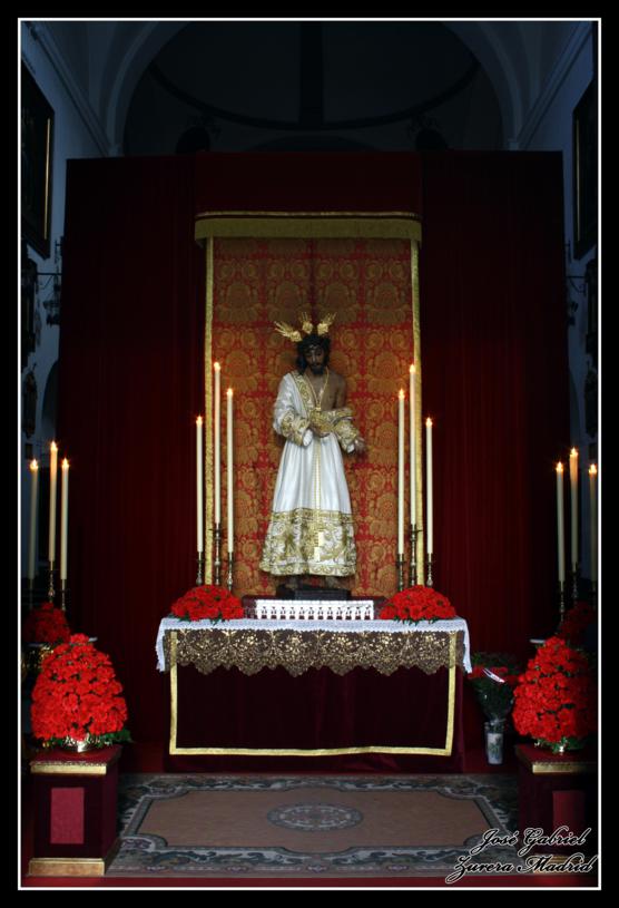 A continuación os muestro una extensa galería fotográfica de este besapiés que, como viene siendo habitual, se celebró en la entrada de la iglesia, con un sencillo a la par que elegante montaje: