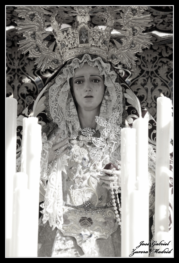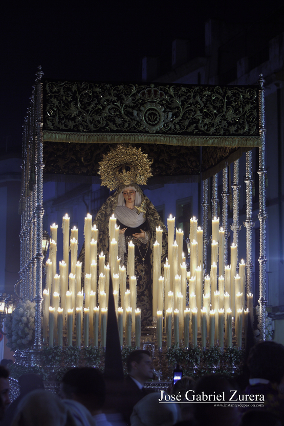 Por su parte, de la Hermandad de los Dolores, en la que como siempre destacaron los sones clásicos de la agrupación de la Redención tras el Cristo de la Clemencia, podréis ver A la Virgen de los Dolores, Señora de Córdoba, y al Cristo de la Clemencia por Capitulares y la plaza del Potro en su recorrido de ida a la carrera oficial, y en el entorno del Bailío y la plaza de Capuchinos a su regreso al Hospital de San Jacinto.