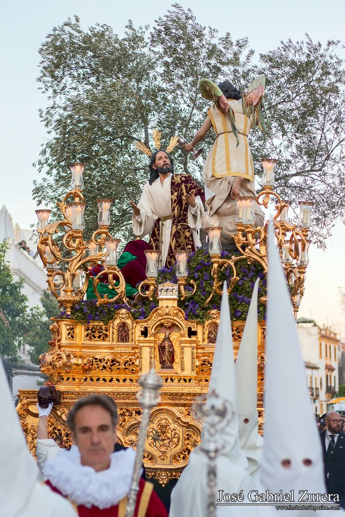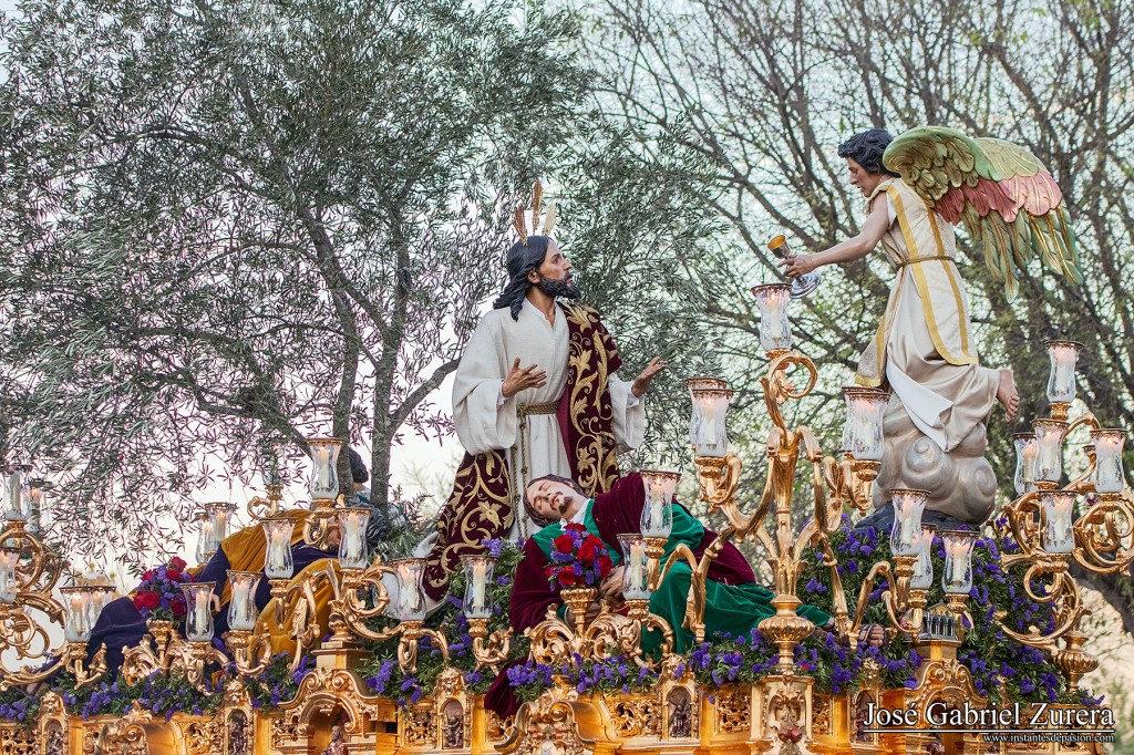 Tras la Hermandad del Amor, de la que este año no os puedo mostrar fotografías, la Hermandad del Huerto fue la encargada de cerrar el Domingo de Ramos. Este año presentaba como estrenos destacados los nuevos apóstoles durmientes para el paso del Señor en la Oración en el Huerto, y unas nuevas potencias en plata para el Señor Amarrado a la Columna.