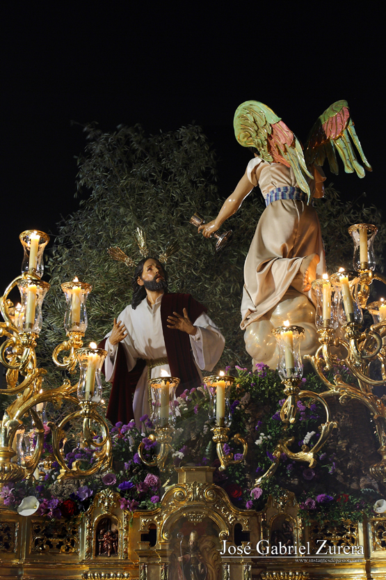 Tras la Hermandad del Amor, de la que este año no os puedo mostrar fotografías, la Hermandad del Huerto fue la encargada de cerrar el Domingo de Ramos. Este año presentaba como estrenos destacados los nuevos apóstoles durmientes para el paso del Señor en la Oración en el Huerto, y unas nuevas potencias en plata para el Señor Amarrado a la Columna.