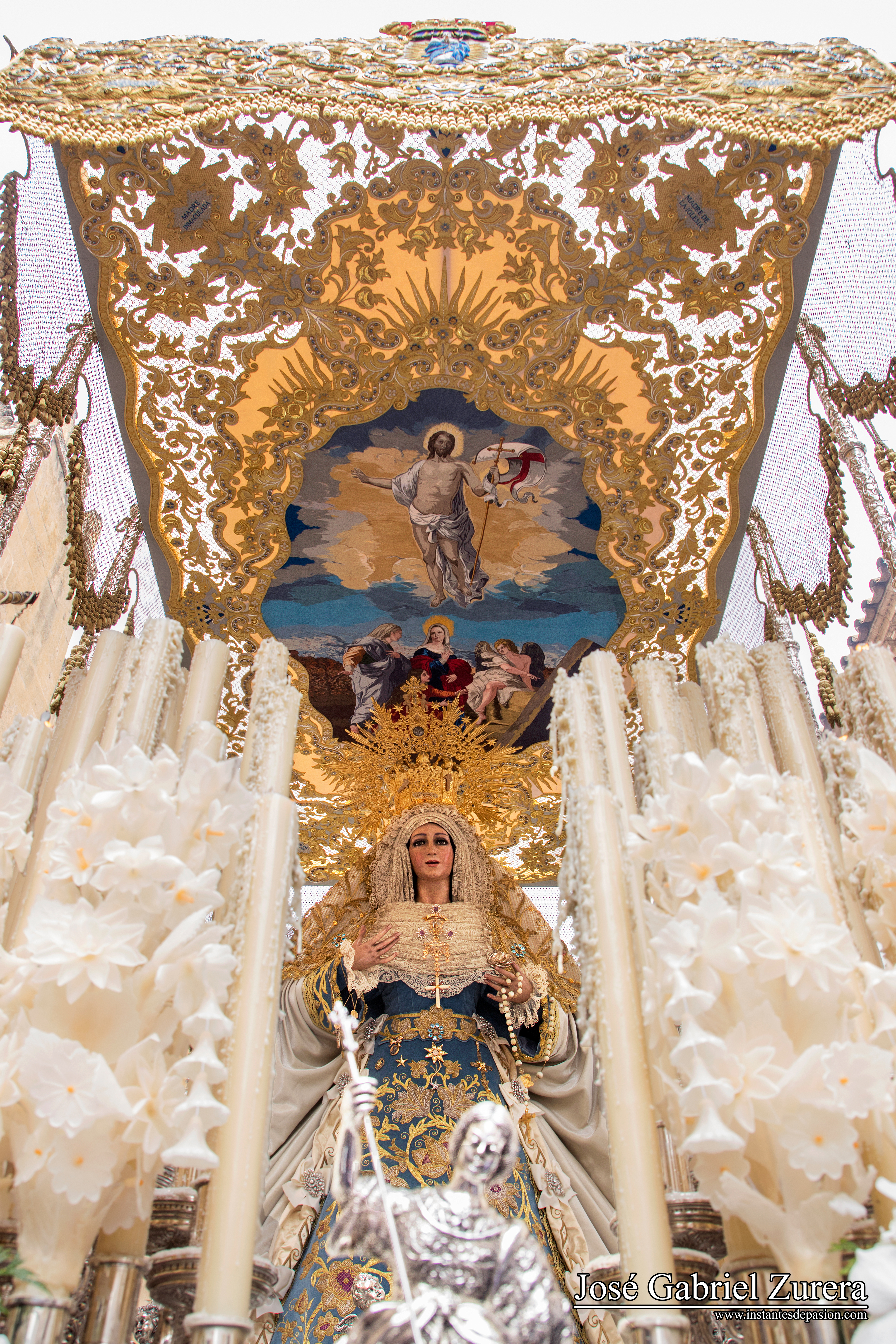 Para terminar la Semana Santa de 2019, en una mañana nubosa, la Hermandad del Resucitado y la Virgen de la Alegría procesionó triunfalmente por las calles de la ciudad, presentando como principal estreno el nuevo techo de palio bordado en los talleres de Jesús Rosado bajo diseño de Rafael de Rueda.
