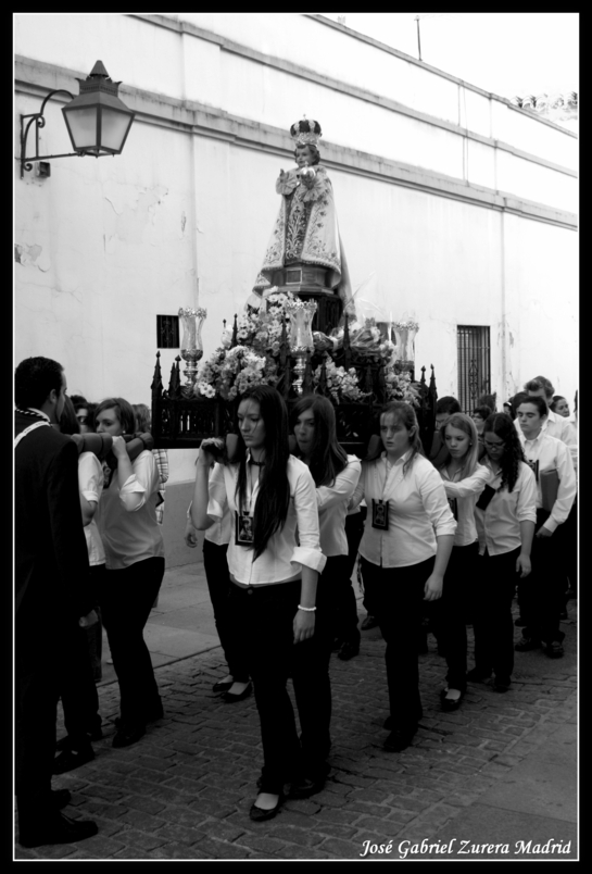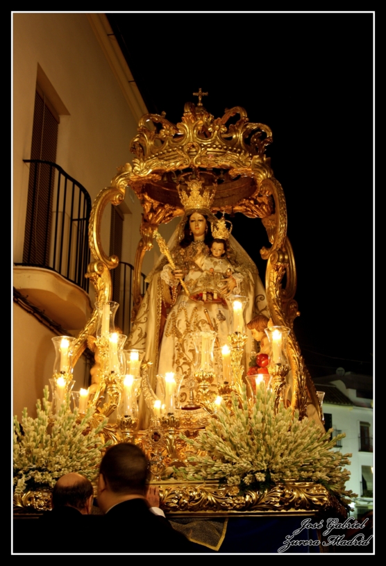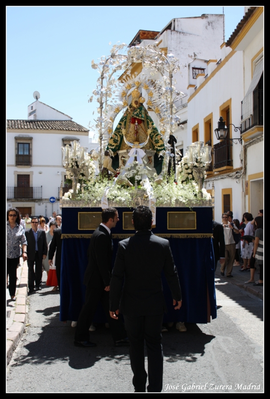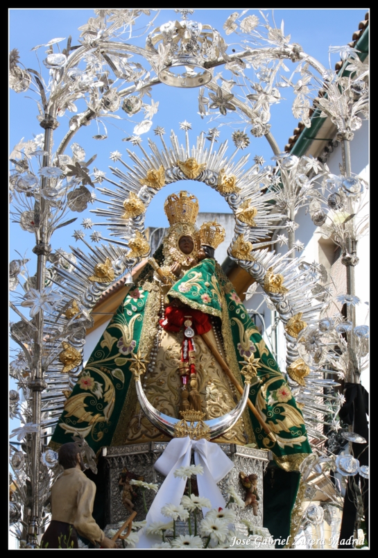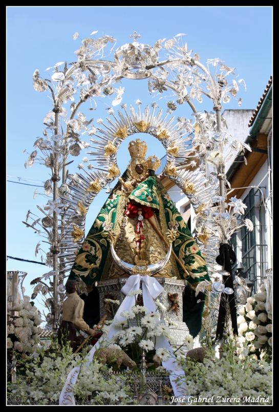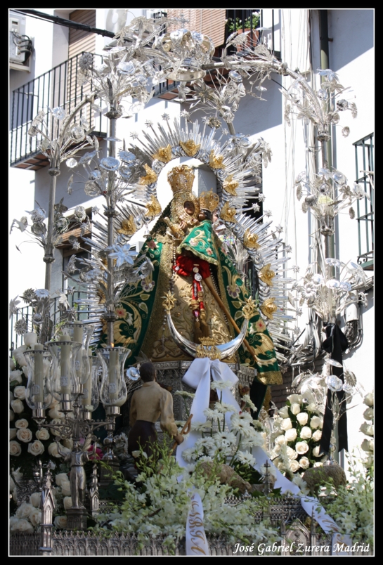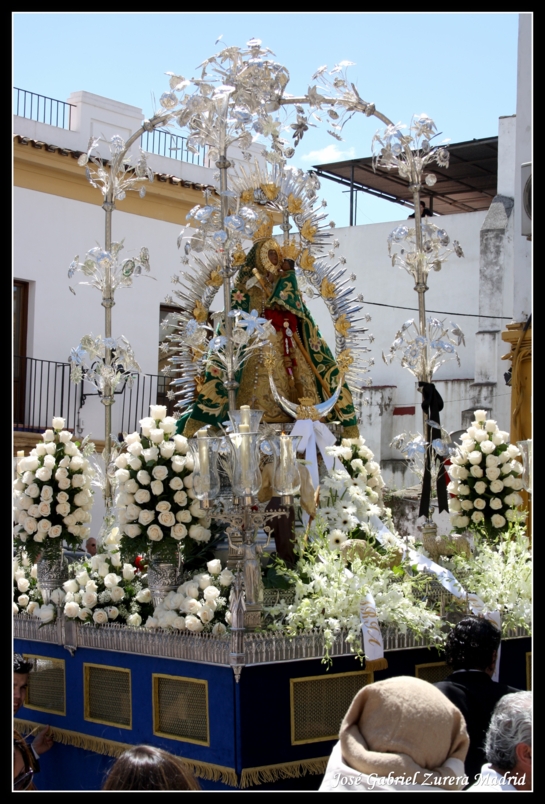 Hacemos una parada en las fotos de Semana Santa para comenzar las procesiones de las hermandades de gloria con las fotografías de Nuestra Señora de La Cabeza que el pasado día 2 de mayo salió desde San Francisco y recorrió su feligresía acompañada de numerosas hermandades y de la Banda de La Esperanza: