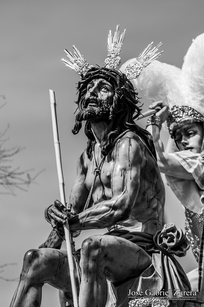 En este 2018, he elegido para ilustrar el cartel una fotografía de Nuestro Padre Jesús Humilde en la Coronación de Espinas, Imagen que durante este año está celebrando el XL Aniversario de su bendición e incorporación a la Hermandad de la Merced.