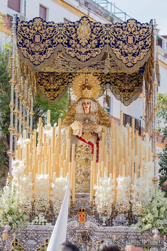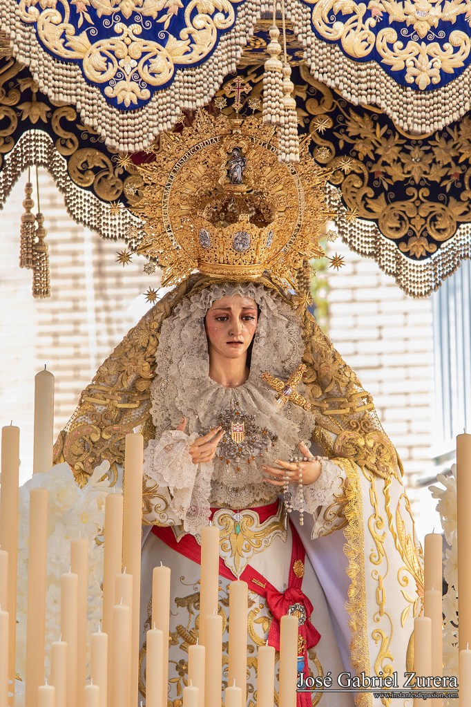 La fotografía la realicé durante el Lunes Santo de 2017, en la Avenida de la Agrupación, minutos después de su salida de la iglesia de San Antonio de Padua.