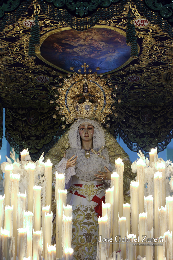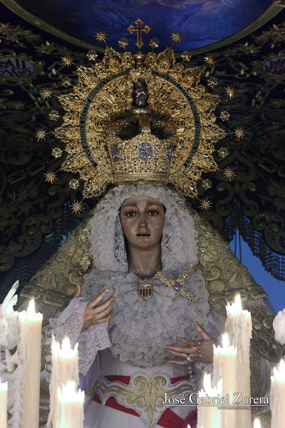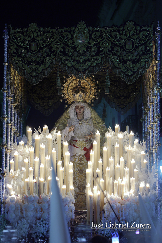La fotografía la realicé durante el Lunes Santo de 2017, en la Avenida de la Agrupación, minutos después de su salida de la iglesia de San Antonio de Padua.