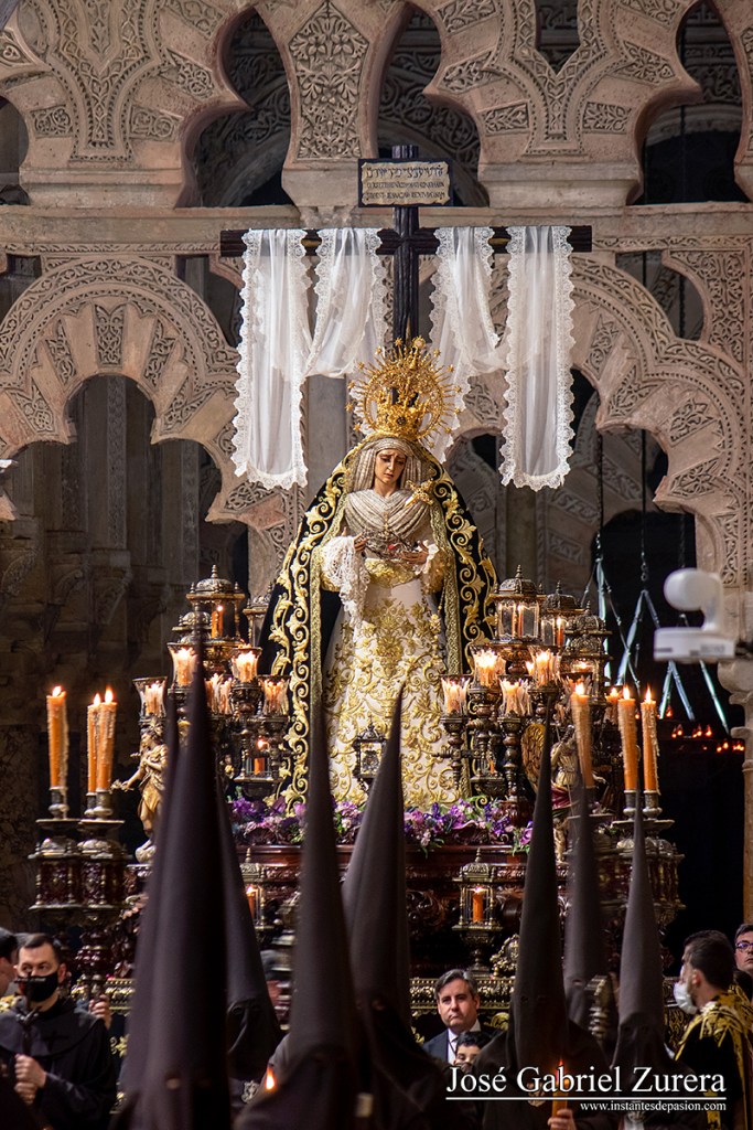 Y llegó el Viernes Santo. A la espera del Domingo de Resurrección, la Semana Santa acababa de manera esplendorosa en una jornada perfecta, en la que el tiempo acompañó a las cofradías y al abundante público que se agolpaba en las calles. Un día completamente consolidado en el que pudimos ver un curioso estreno, el manto de brocatel realizado para la Virgen del Desconsuelo del Santo Sepulcro. Y otro estreno, que más bien fue recuperación histórica, los nuevos candelabros frontales de la Virgen de los Dolores, que recuperó una estampa añeja que dejó satisfecha a la Córdoba Cofrade.