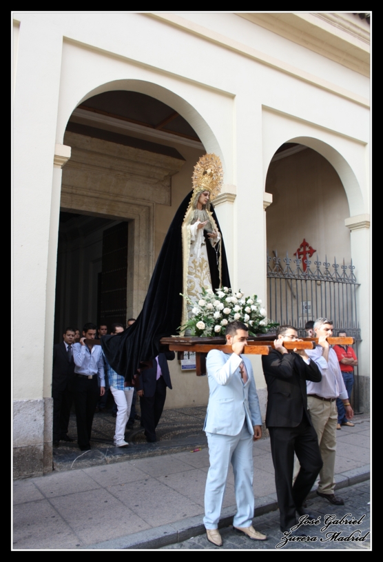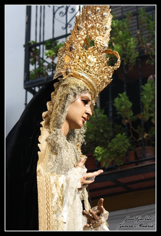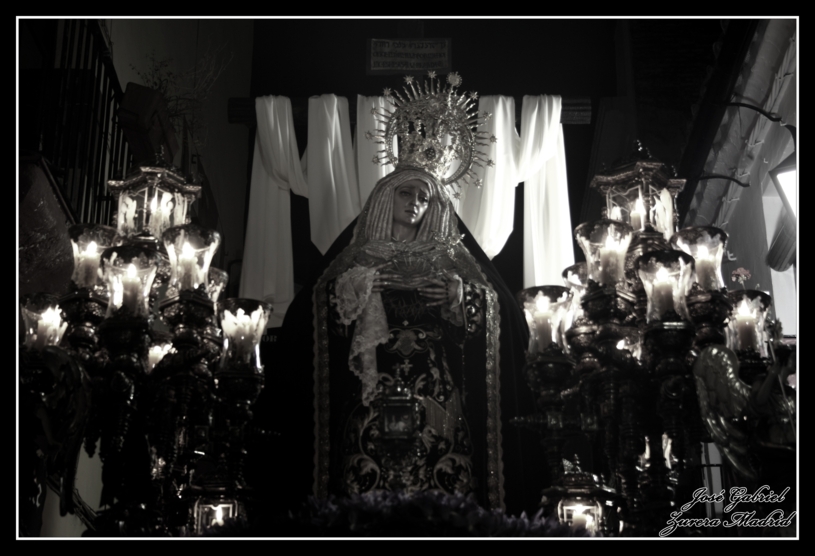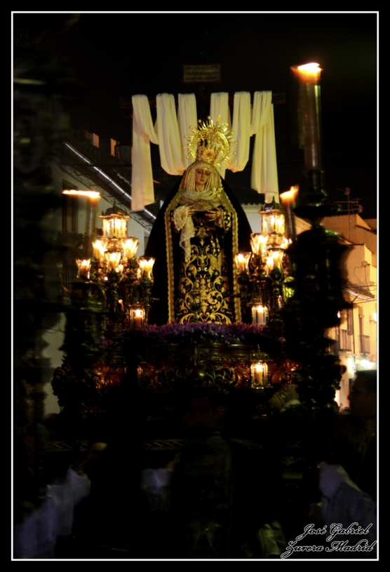 En la galería fotográfica que os muestro podréis ver a la Virgen de la Soledad en su salida desde la parroquia de Santiago y en la calle Agustín Moreno, y posteriormente ya de noche, en su recorrido de regreso atravesando las calles Cardenal González y Lineros.
