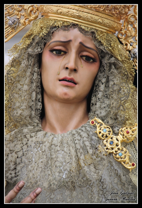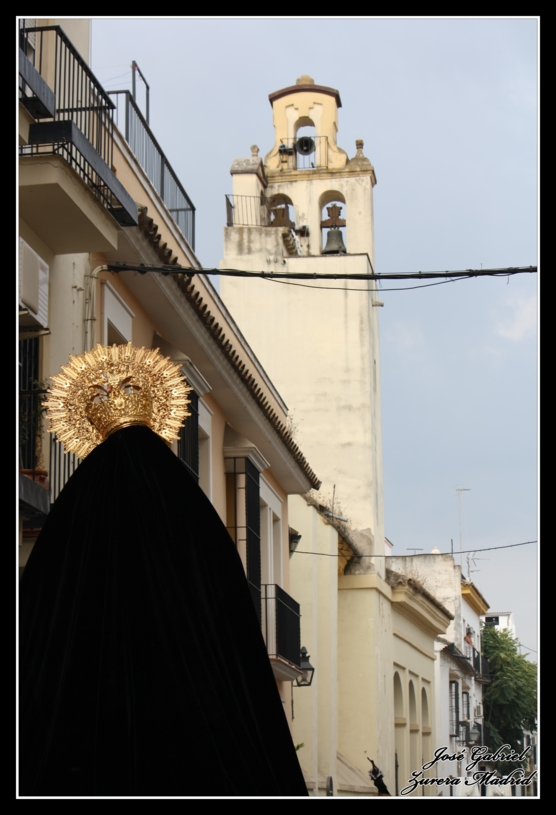 La primera galería de las hermandades de la tarde de Viernes Santo es la de la Virgen de la Soledad a su regreso a la Parroquia de Santiago, en la calle Corregidor Luis de la Cerda. Estas son las fotos: