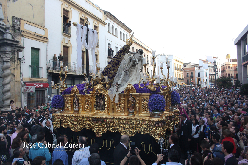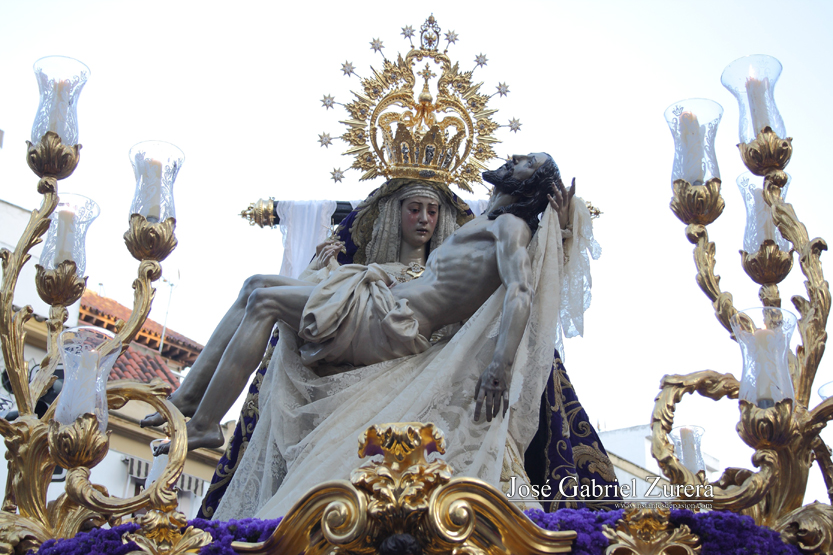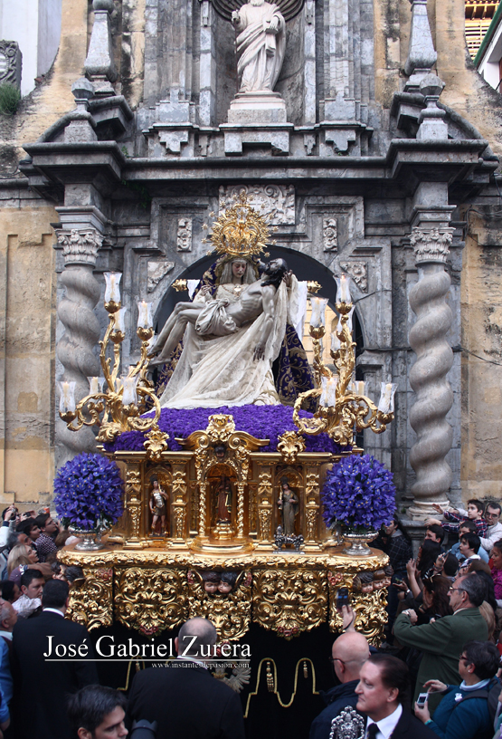 Y como cierre del Jueves Santo, la Reina de San Agustín, la Virgen de las Angustias Coronada. La magnífica Virgen que tallara el insigne Juan de Mesa y Velasco volvió a recorrer las calles cordobesas sobrecogiendo a su pueblo ante su llanto y la visión de su Hijo muerto en sus brazos.
