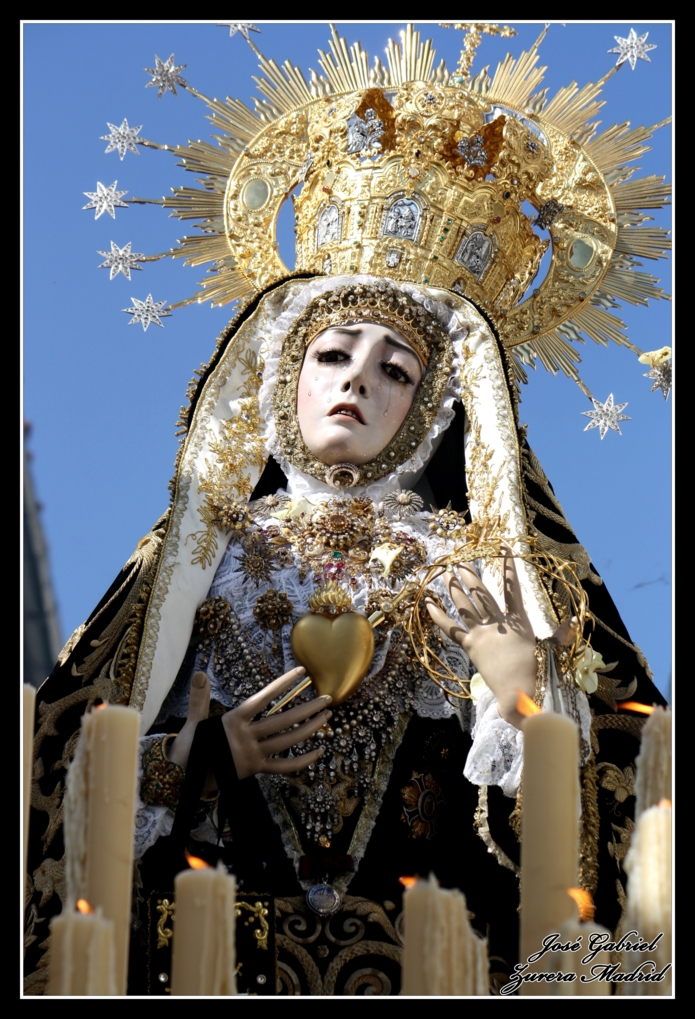 La penúltima hermandad que procesiona el Viernes Santo es la hermandad de los Dolores. Aquí os muestro una extensísima galería de fotos del Santísimo Cristo de la Clemencia y la Virgen de los Dolores Coronada en la salida y en la calle Torres Cabrera: