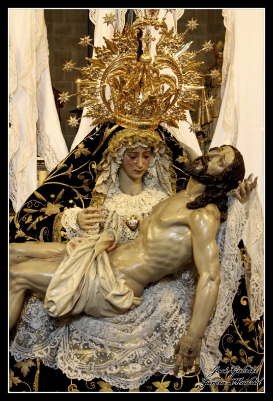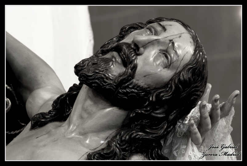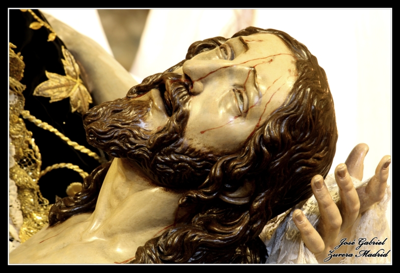 El crucificado es obra del imaginero pontanés Pedro García Velasco, y viene a sustituir a la imagen anterior, obra de Juan de Ávalos, que no era propiedad de la corporación.