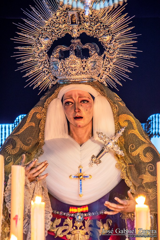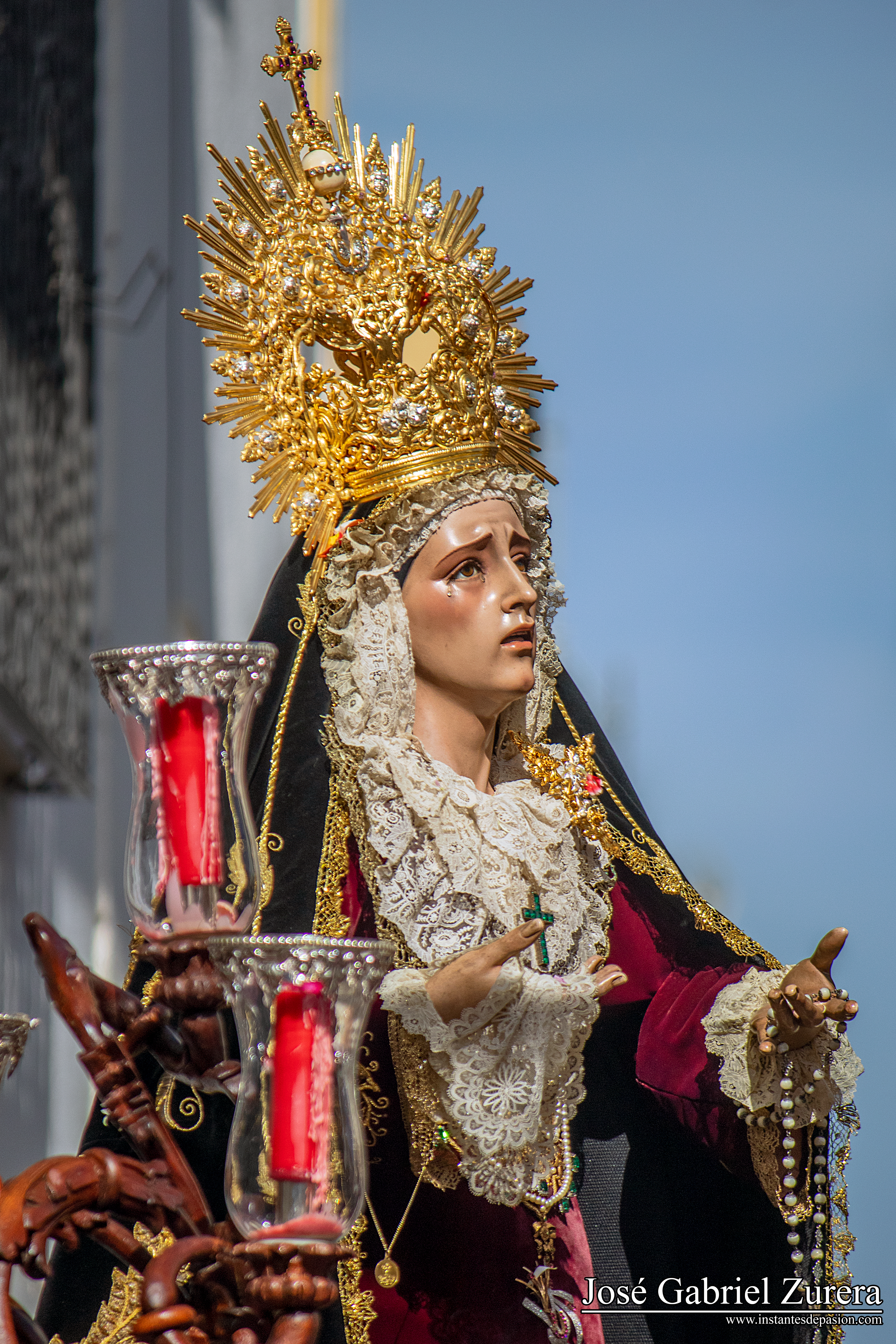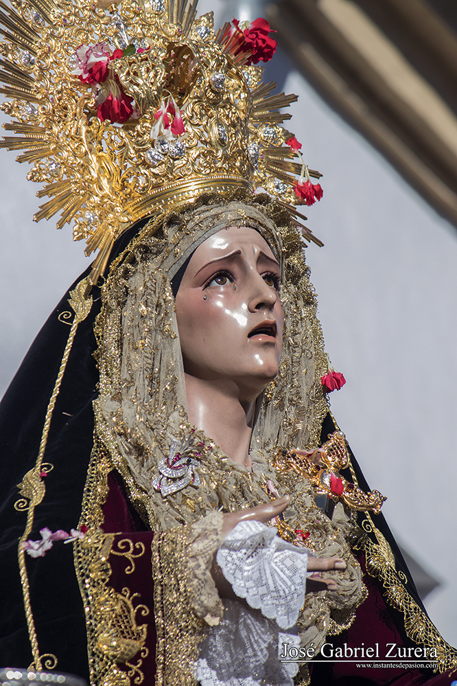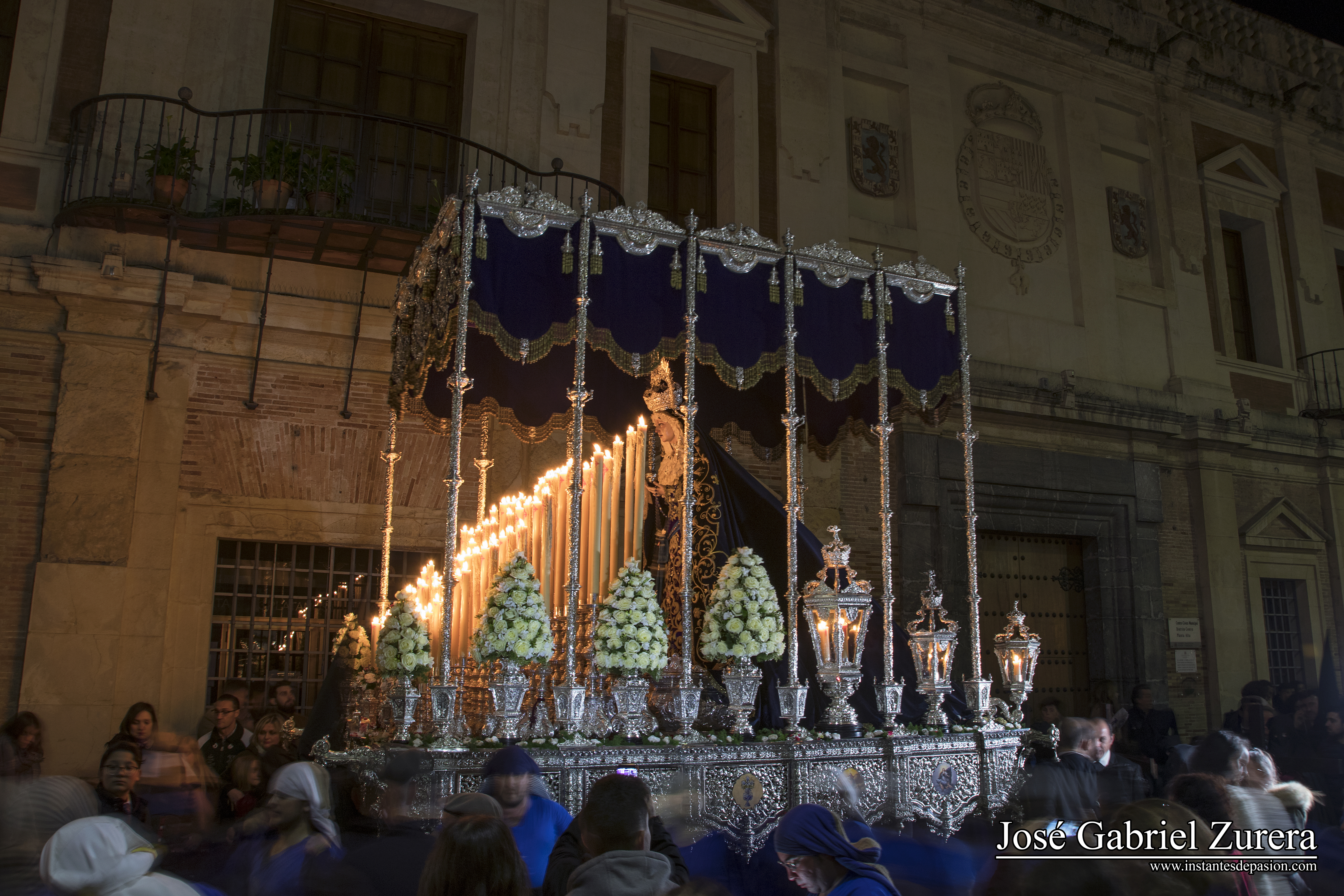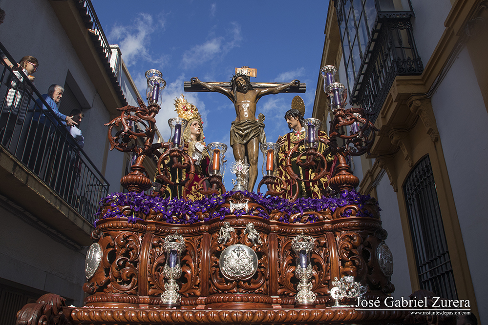 Como decíamos, con la media hora de retraso preceptiva, la remozada Cruz de Guía de la Hermandad de las Penas de Santiago se ponía en la calle a las 17:30 para iniciar su estación de penitencia a la Santa Iglesia Catedral. El Santísimo Cristo de las Penas, con la Virgen de los Desamparados a sus pies, y la Vrigen de la Concepción bajo su palio, llenaron de júbilo su barrio un año más.