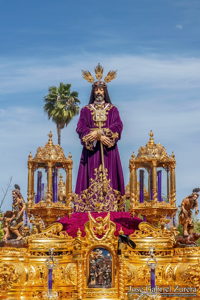 Tras la Hermandad del Amor, de la que este año no os puedo mostrar fotografías, la Hermandad del Huerto fue la encargada de cerrar el Domingo de Ramos. Este año presentaba como estrenos destacados los nuevos apóstoles durmientes para el paso del Señor en la Oración en el Huerto, y unas nuevas potencias en plata para el Señor Amarrado a la Columna.